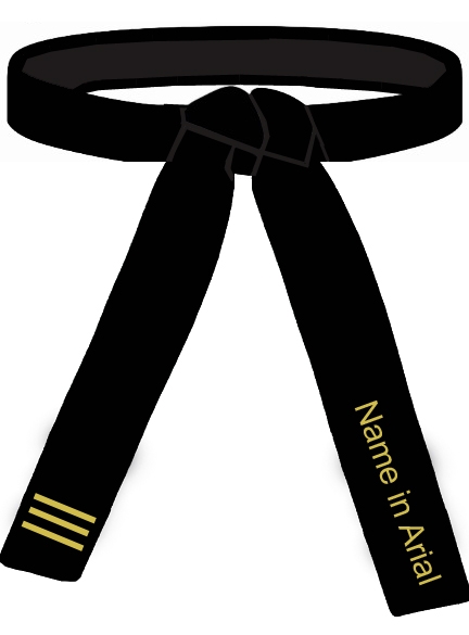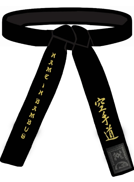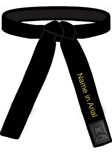 Der Gürtel kann 1-seitig, über dem Gürtellabel (auf Wunsch auch auf dem anderen Ende) mit den Schriftzeichen der Stilrichtung bestickt werden.